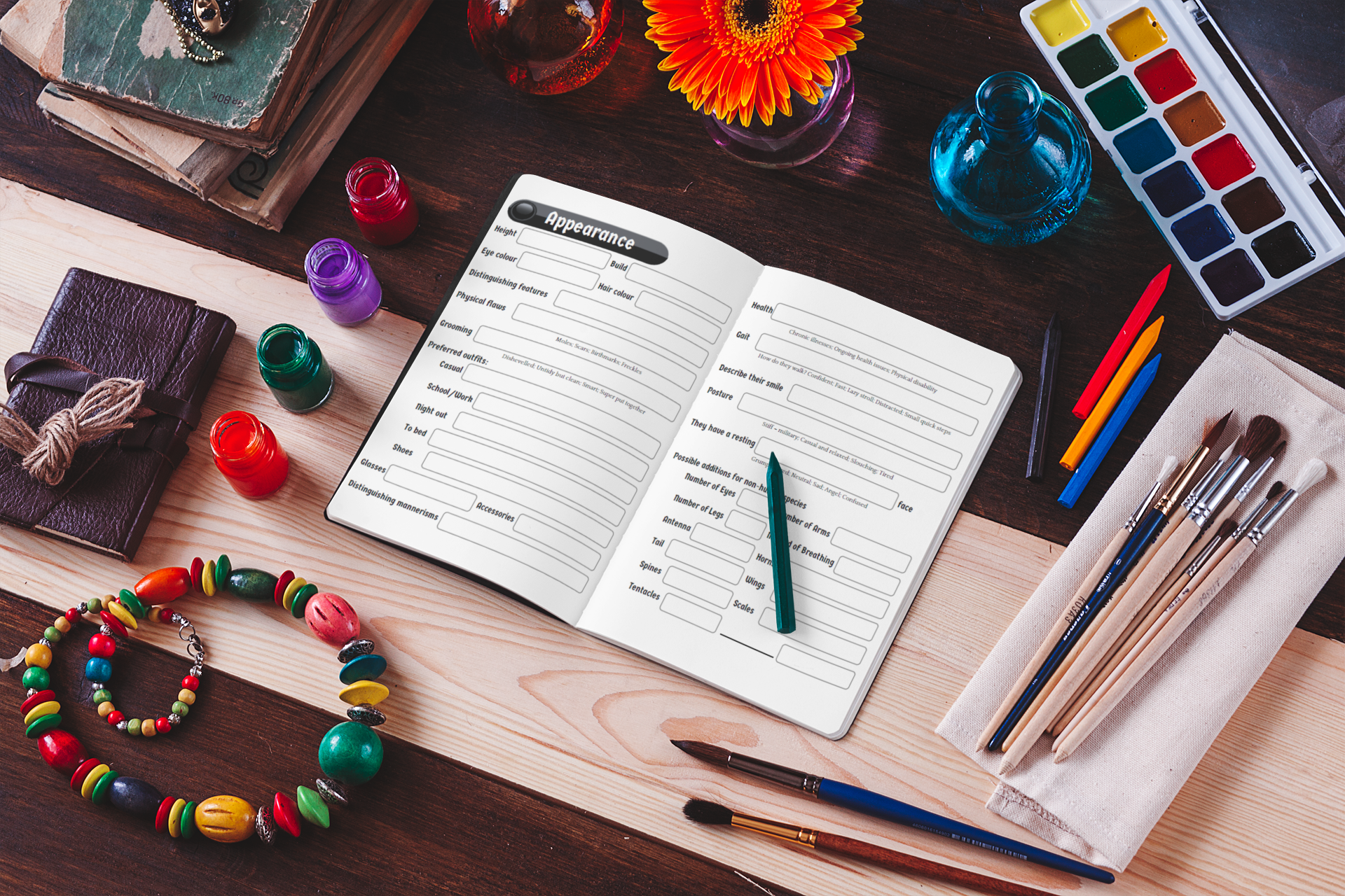 Broken down into 20+ pages of notes to guide you in what the questions mean, and a 20 page print out for the actual characters. You can use this again and again to create as many characters as you want.