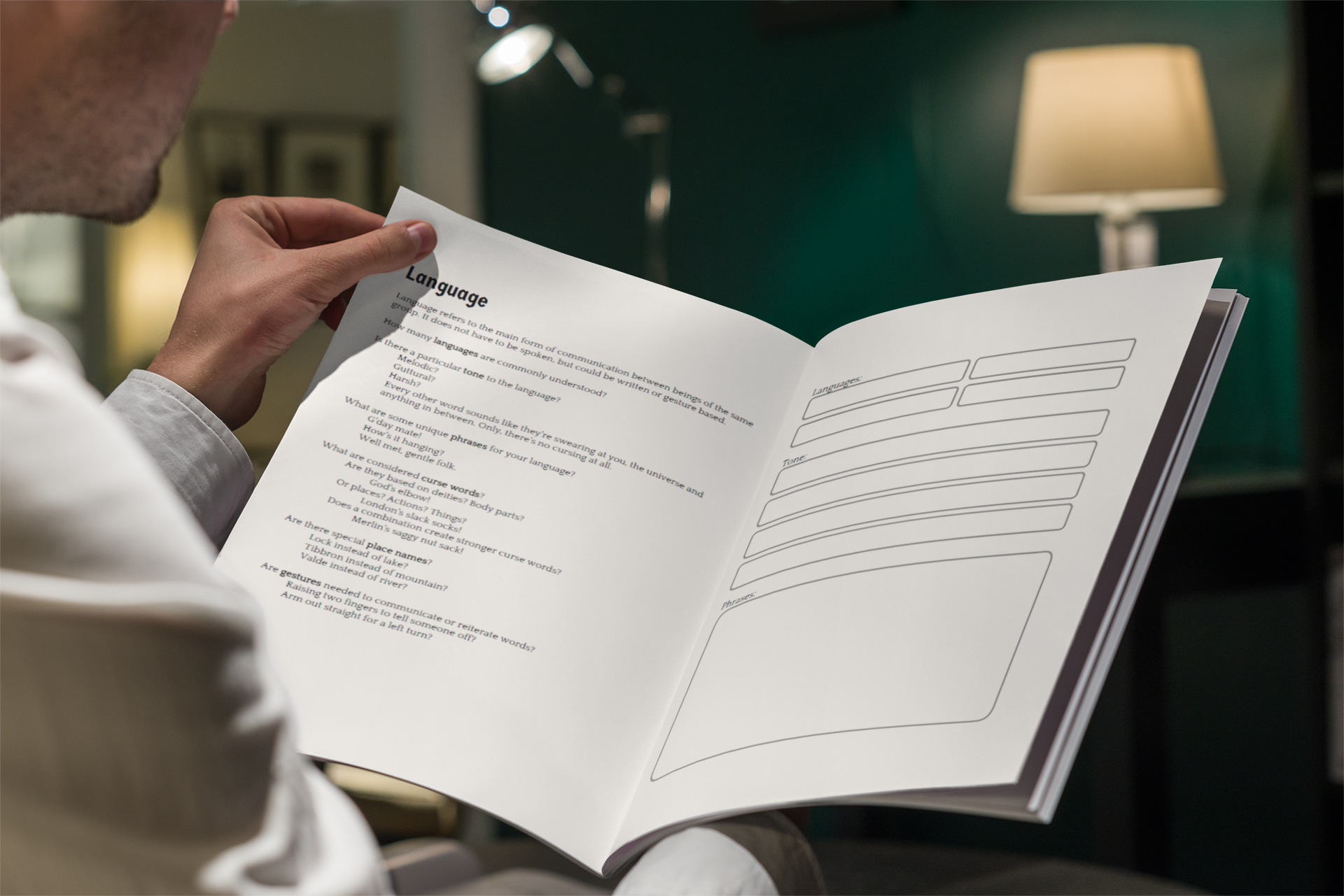 As the author of a series with over 900 worlds in it, and a detailed, six generation deep family tree for an entire island of people, I’m rather practised at world building. Of course, this has been adapted, and you’re more than free to take white out to the bits you don’t want to complete (or just ignore them for now, they may spark ideas later on!). Inside this workbook, there is room for one world, and space for up to ten countries for you to create.